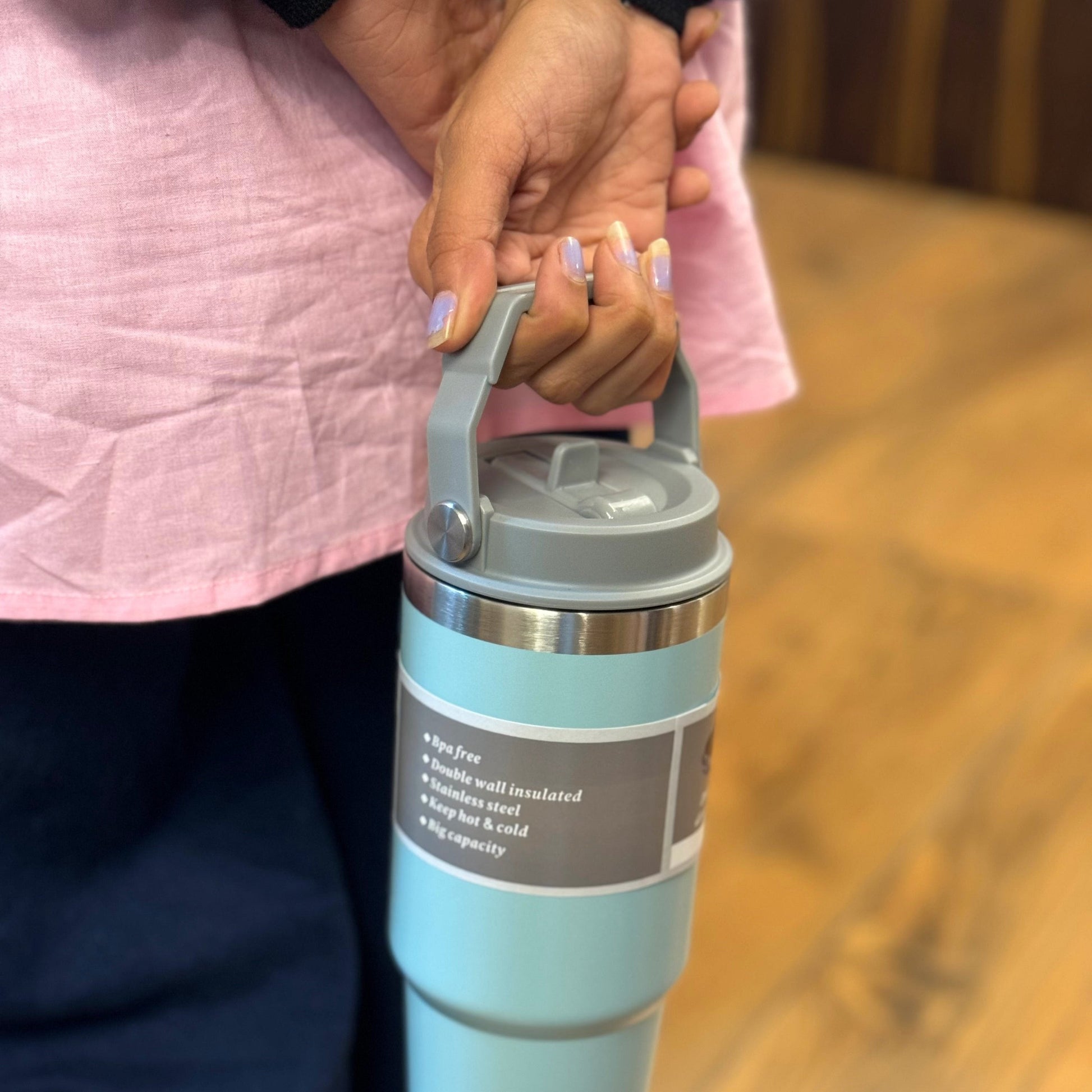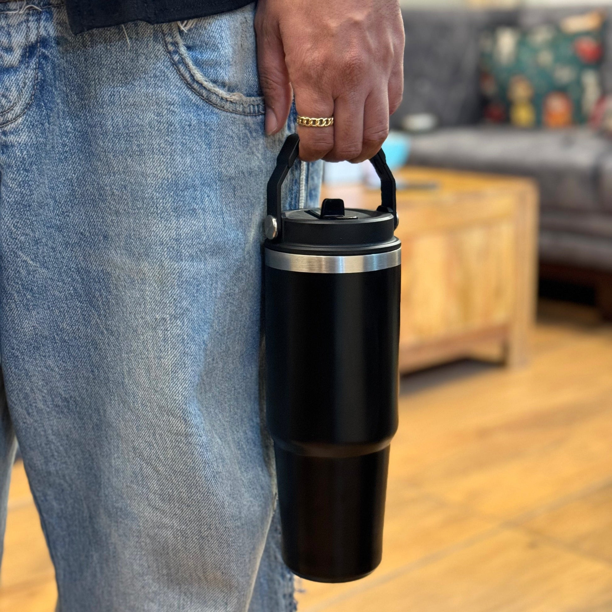 Stan: 900ml Leakproof & Insulated Stainless Steel Tumbler with Handle, Straw & Double-Wall Design for Hot & Cold Drinks