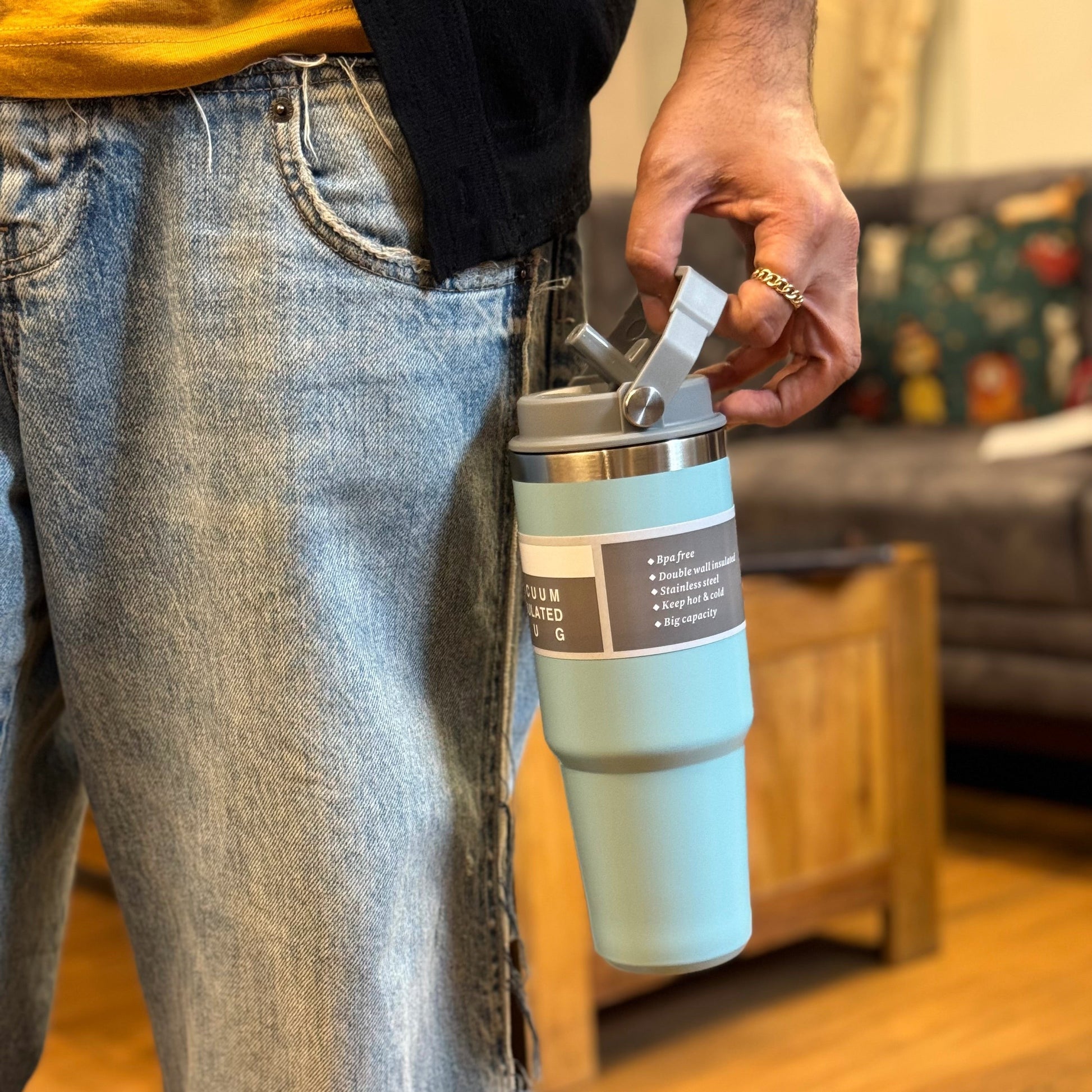Stay refreshed all day with this stainless steel tumbler, offering a generous 900ml (30oz) capacity. Designed to keep your drinks icy cold for up to 24 hours or piping hot for up to 12 hours, it’s perfect for commutes, workouts, or outdoor adventures. The leak proof flip straw lid ensures effortless sipping and a mess-free experience, making it a must-have for your on-the-go lifestyle.