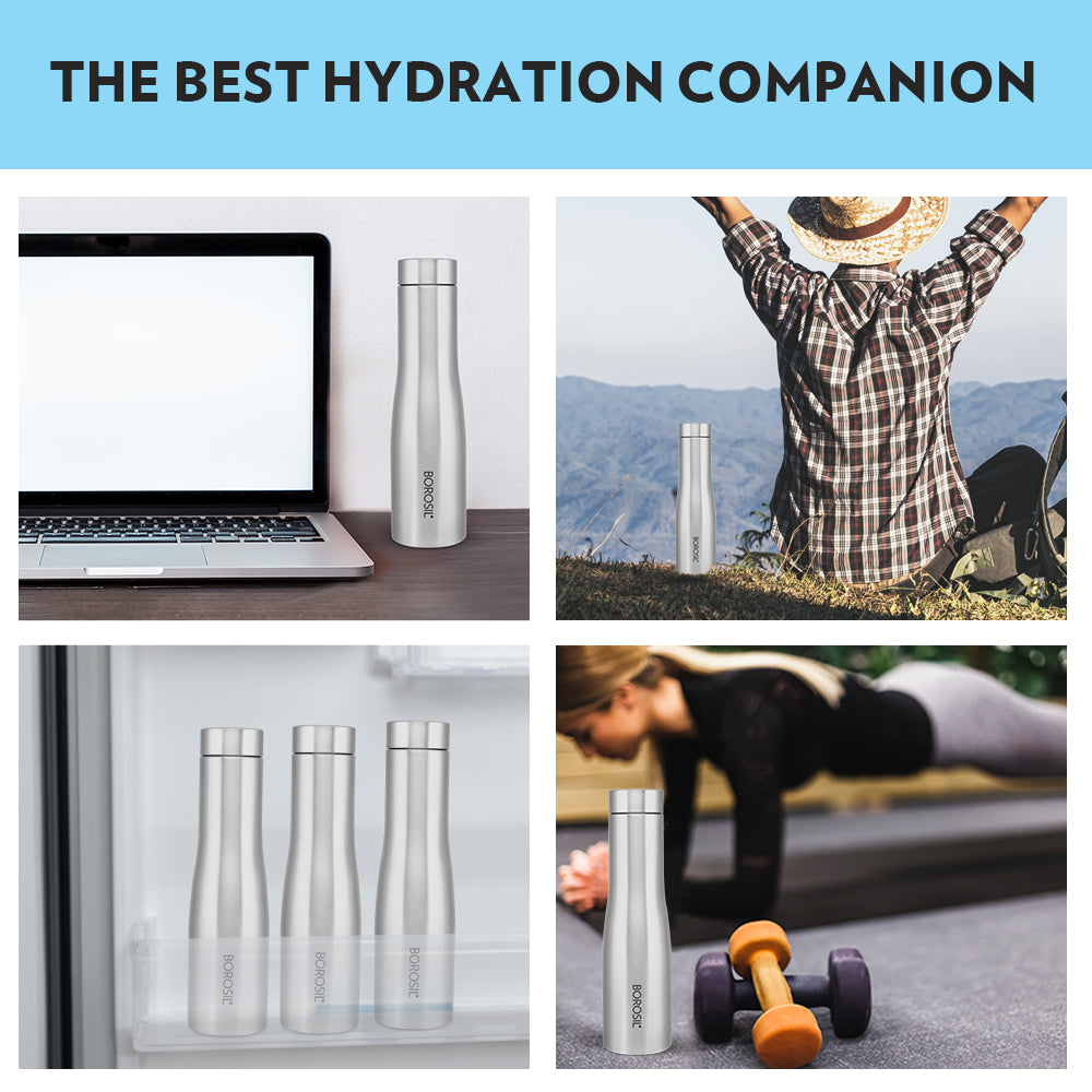 Borosil Swan Stainless Steel Single Wall Bottle, 1 L