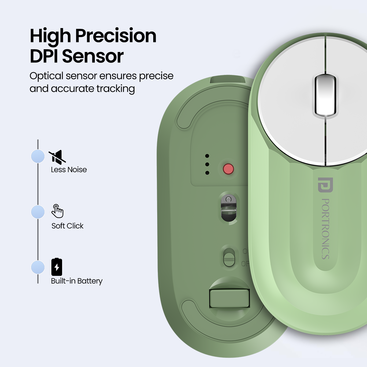 - Dual Wireless Connectivity: Using the latest wireless technology, the Portronics Toad 6 wireless mouse can connect to your devices wirelessly using Bluetooth and the 2.4 GHz USB receiver.
