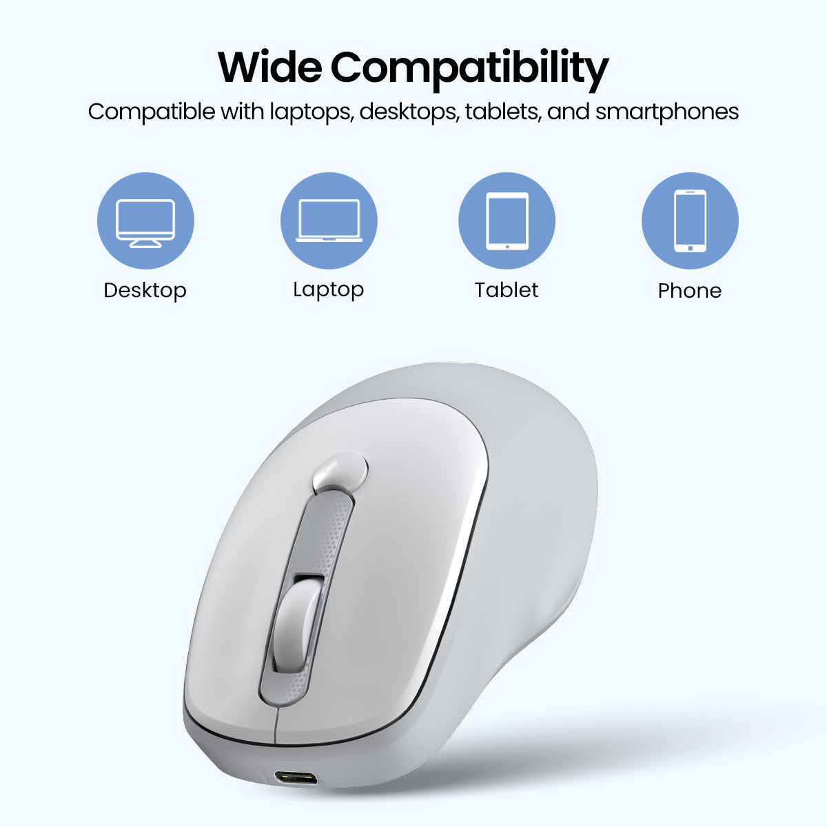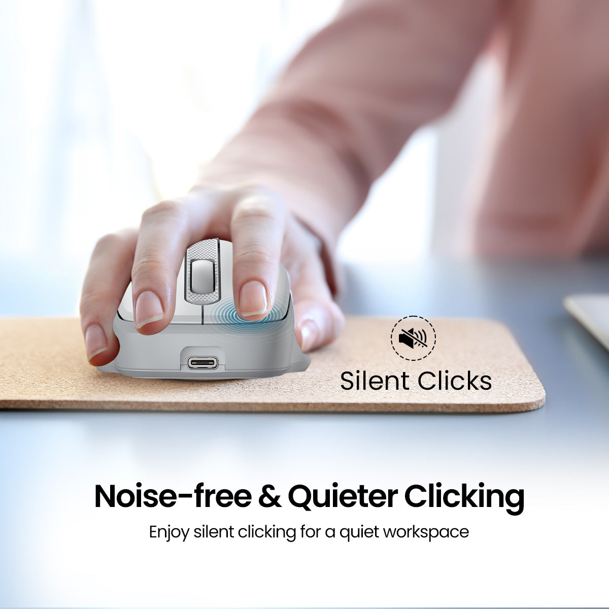 - Silent Clicking : Experience a quieter workspace with silent-click buttons that reduce noise without sacrificing performance. This bluetooth mouse is ideal for shared environments, meetings, and late-night use.