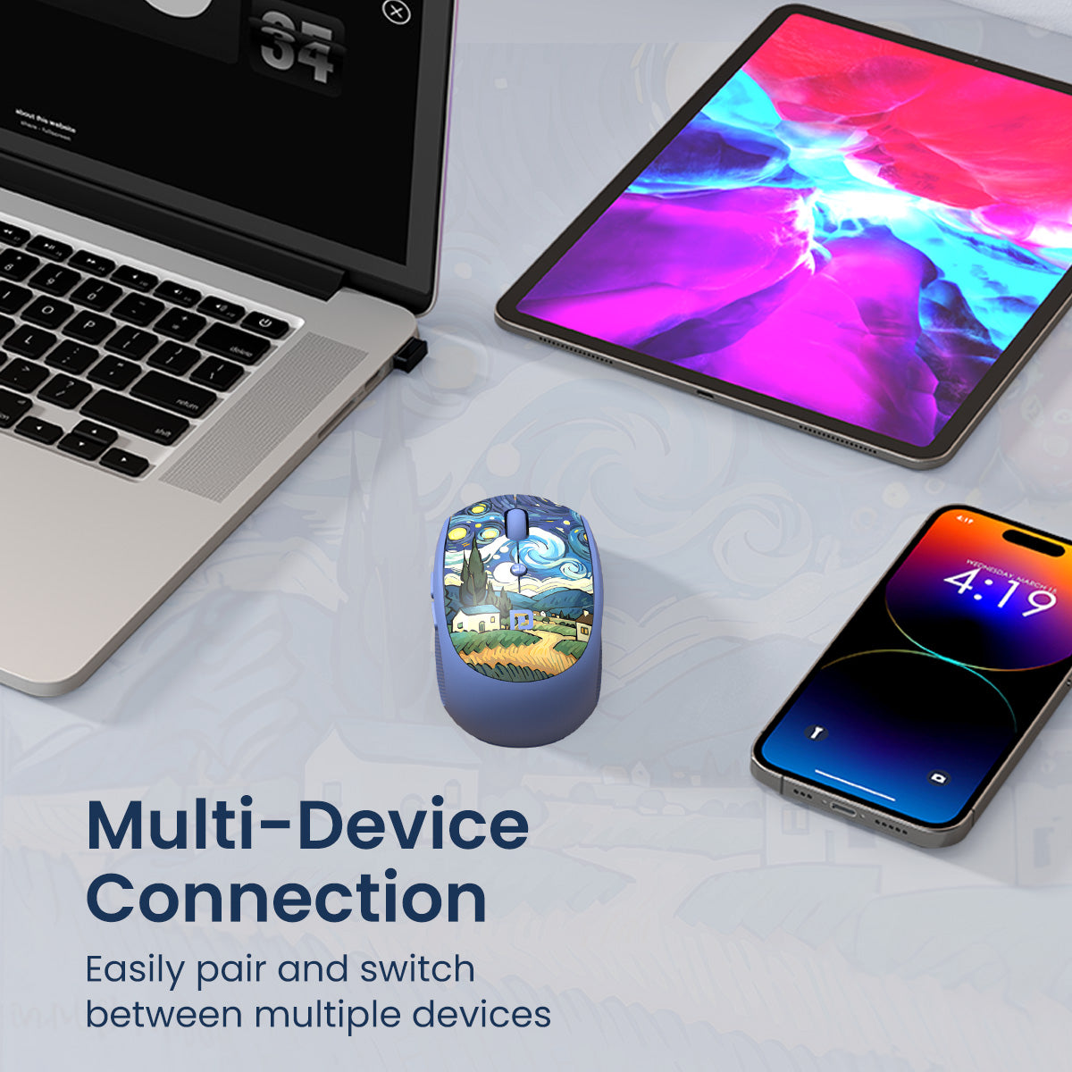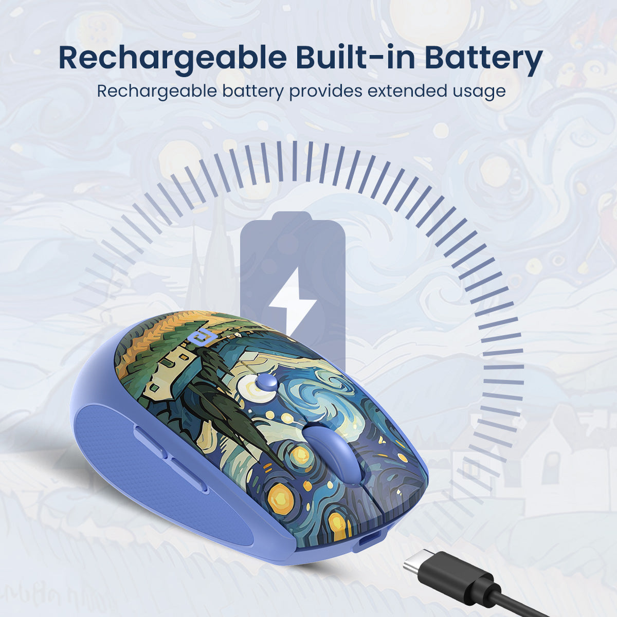• Van Gogh-Inspired Aesthetics: Inspired by Van Gogh’s iconic 'Starry Night' print, this mouse is perfect for Van Gogh fans, adding a unique, artistic touch to your workspace. Bring a piece of classic art into your daily routine with every click.