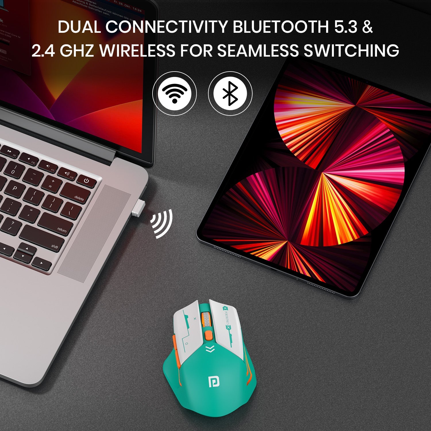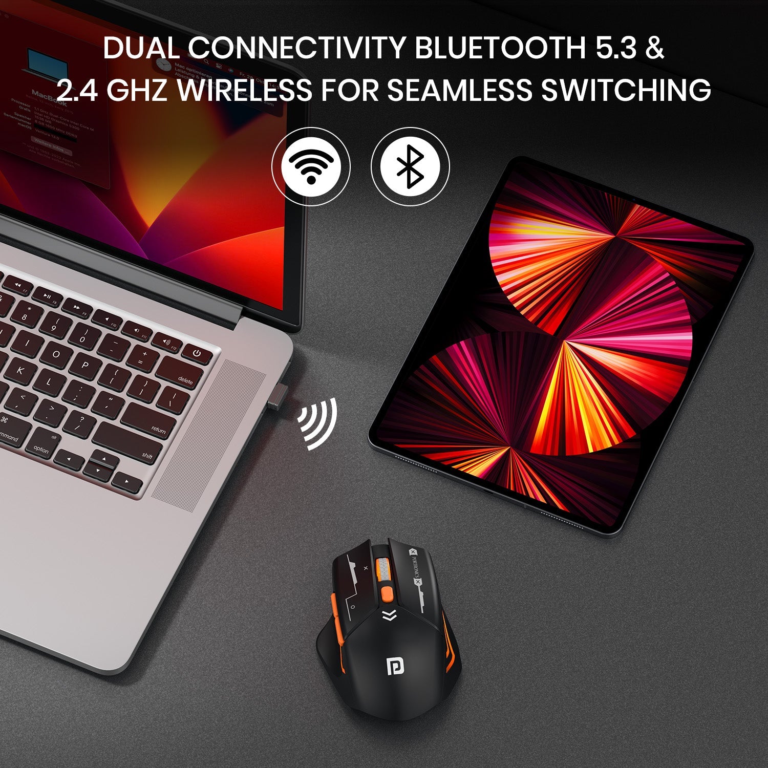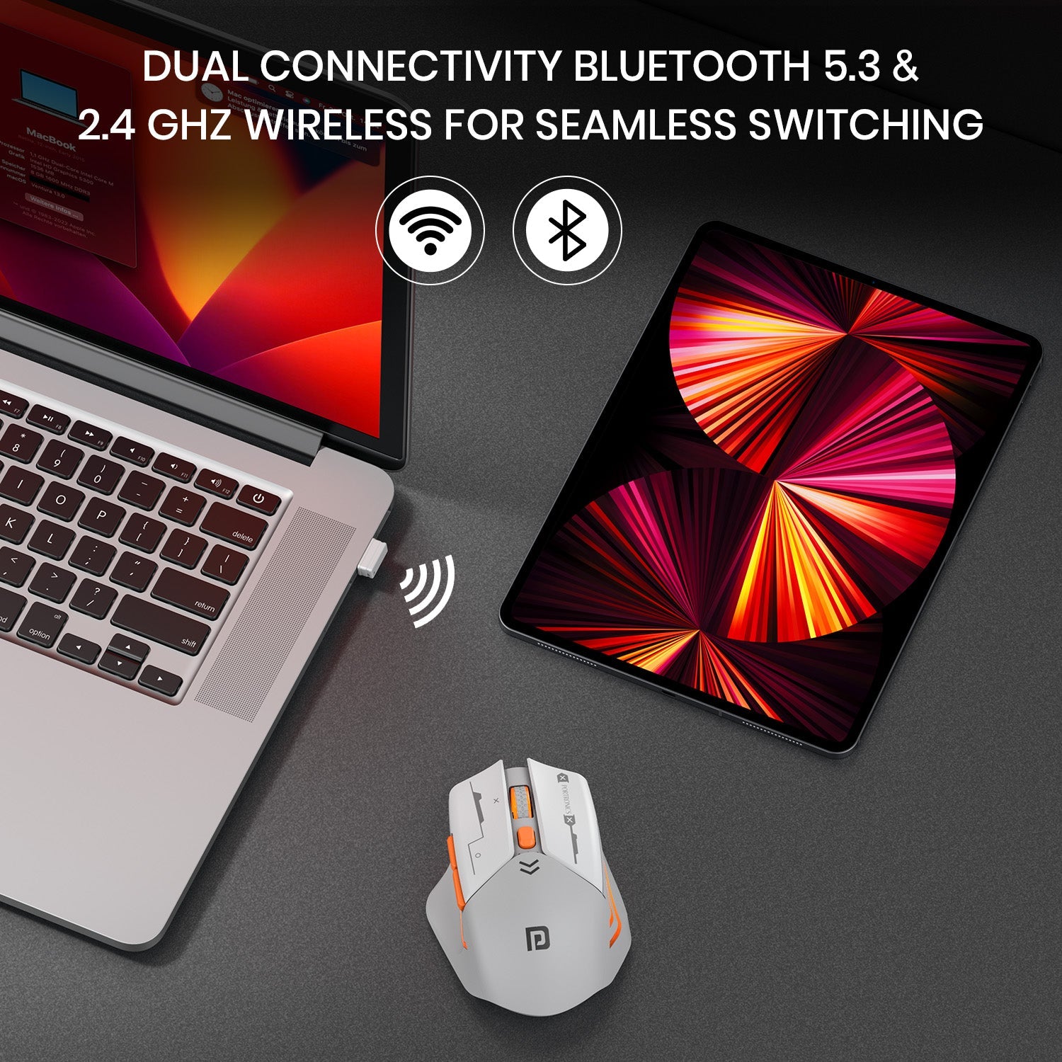 - Dual Mode Wireless Connectivity – Bluetooth 5.3 & 2.4 GHz: Enjoy seamless and lag-free performance with Bluetooth 5.3 for power efficiency and 2.4 GHz wireless for high-speed gaming and office work.