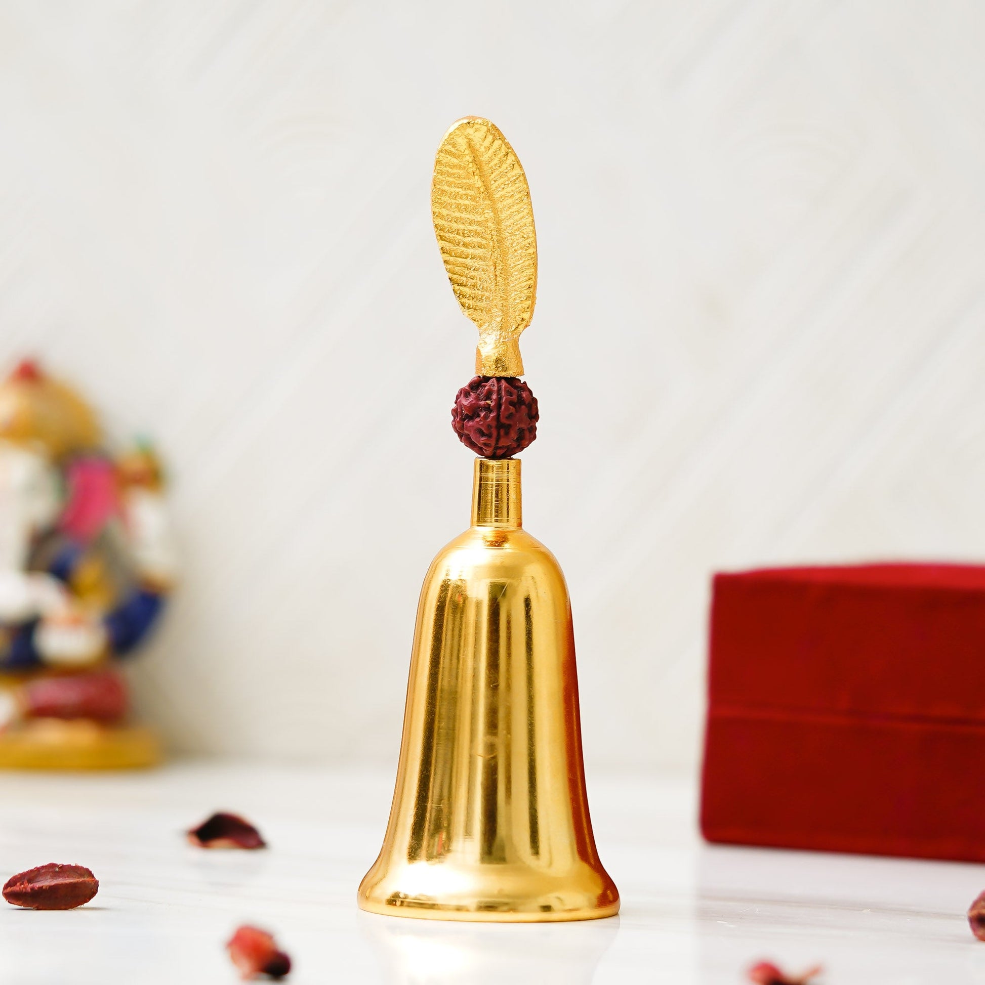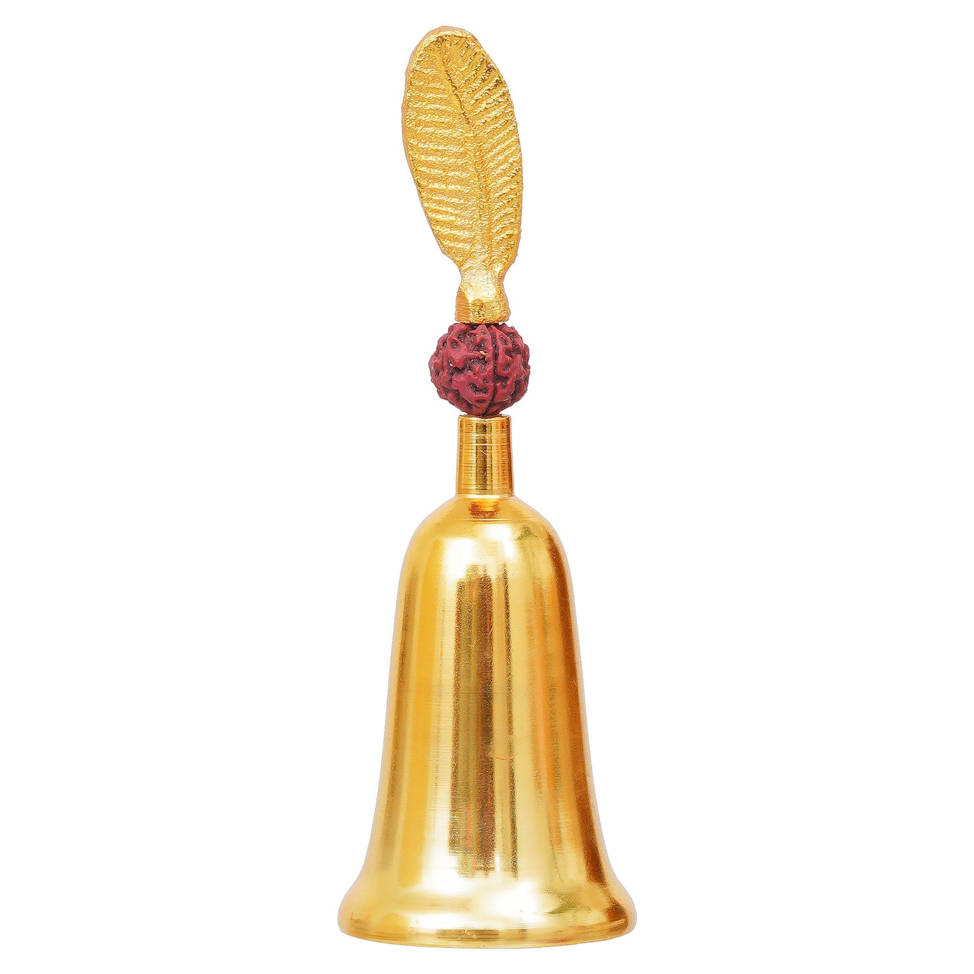Webelkart Antique HandiCrafted Gold Plated Pooja Bell with Rudraksha with Velvet Box for Home/Office Decor/Brass Hand Puja Bell/Pooja Ghanti/Pooja Article for Temple (7" Inches Gold)