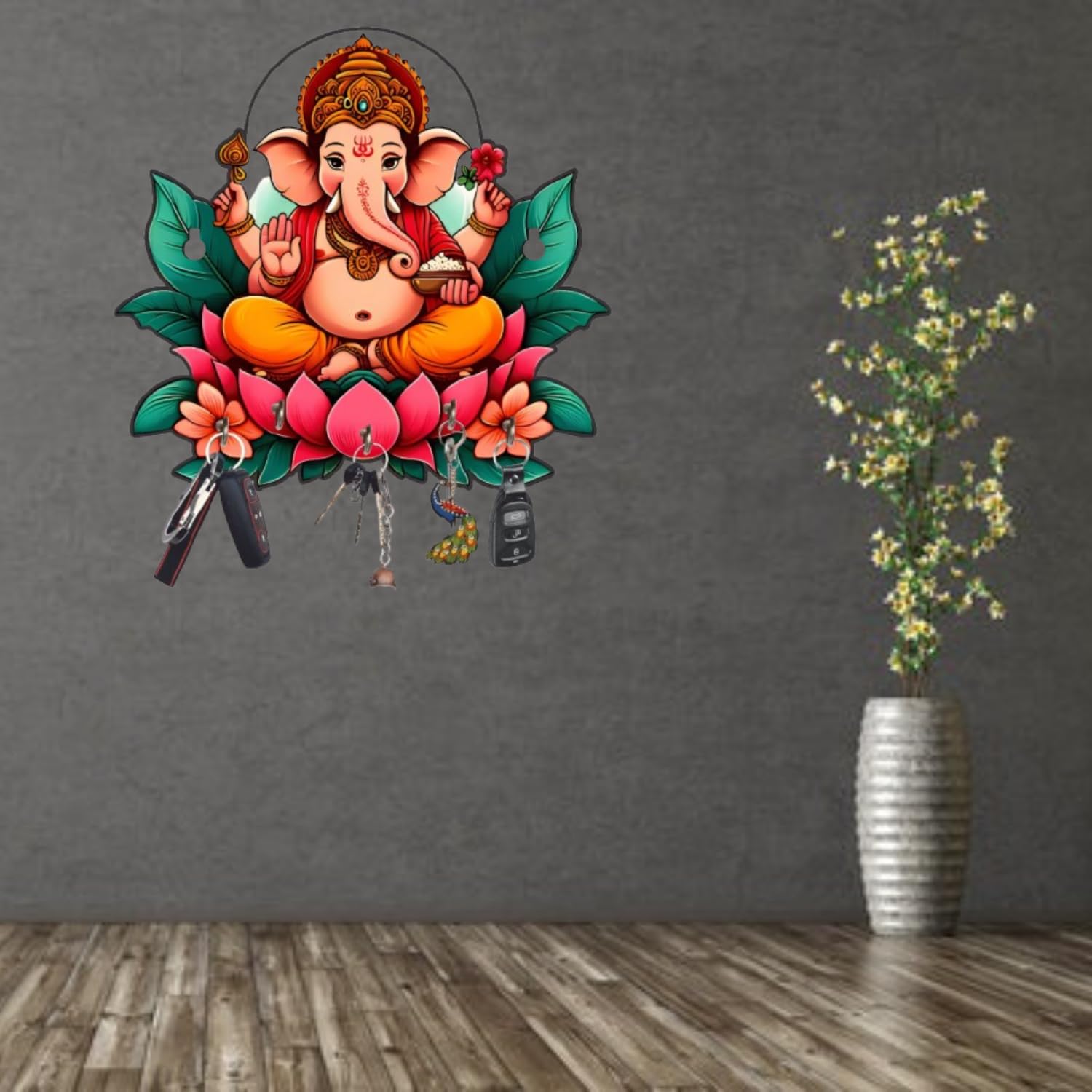 - 💟Dimensions (Wxdxh) In Cms:- 10 x 10 Inches Material: MDF Multicolor Ganesha Wall Key Holder