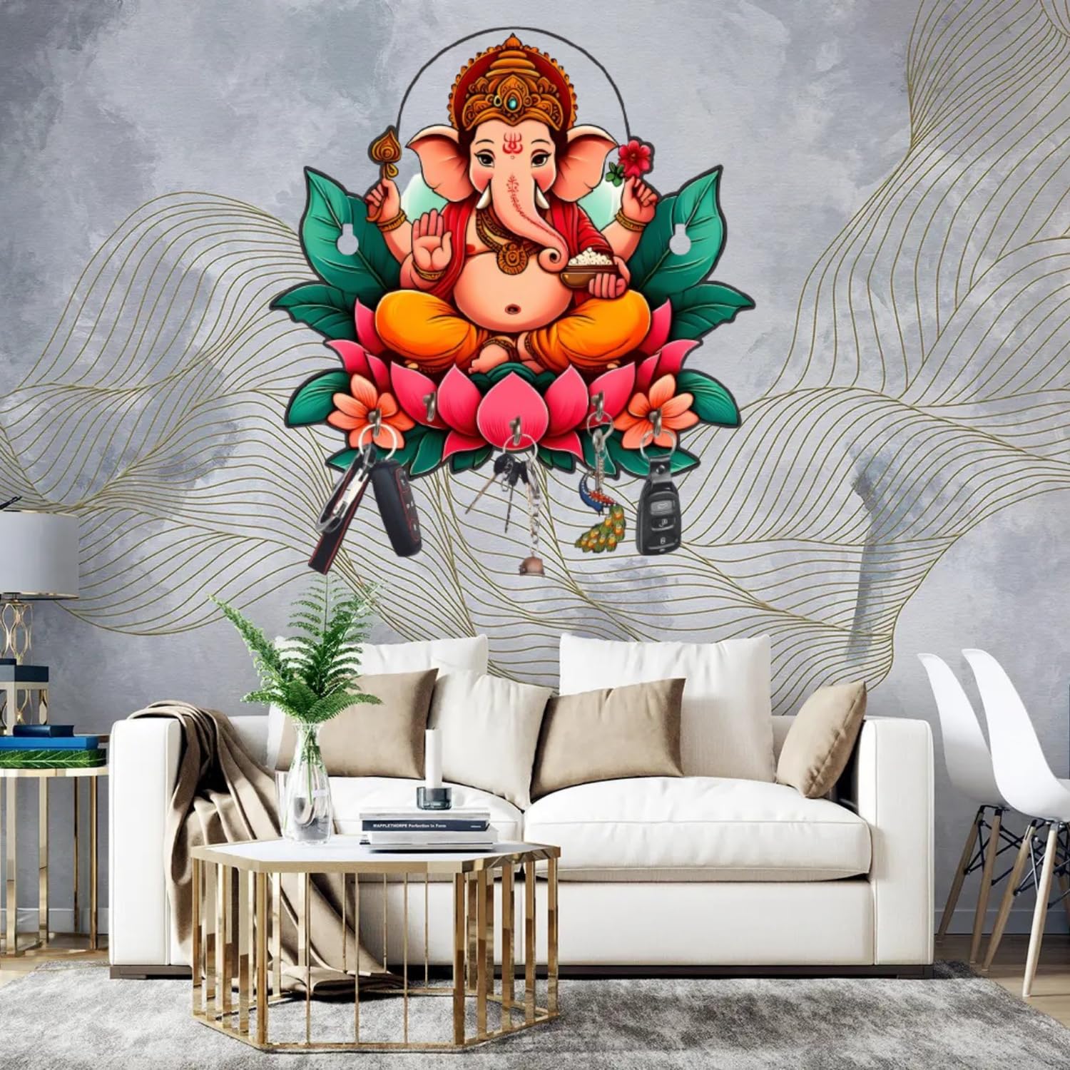 - 💟Package Contains: 1 Unit Of Webelkart ' Cute Ganesha Wall ' Wooden Key Holder