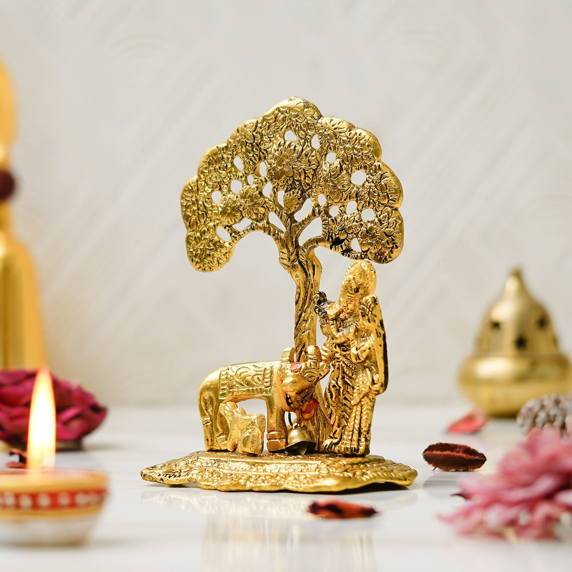 - Package Contents: 1 Unit Of Lord Radha Krishna And Cow Showpiece With Tree For Home Decor