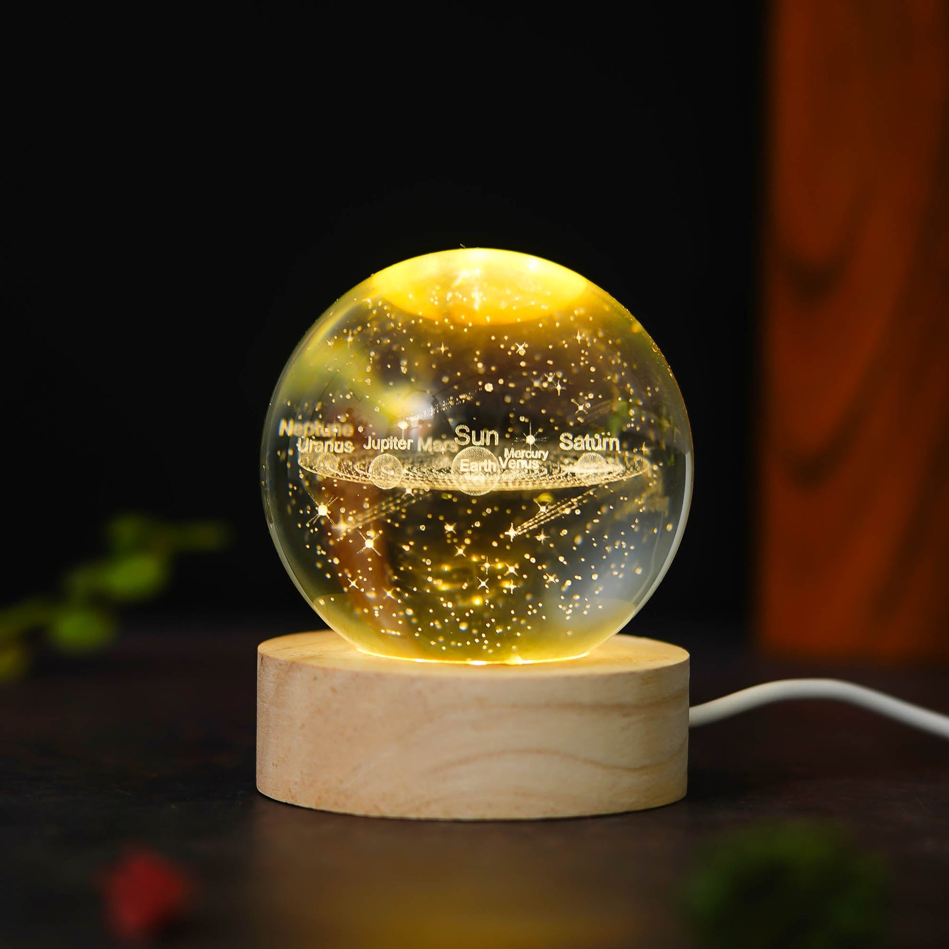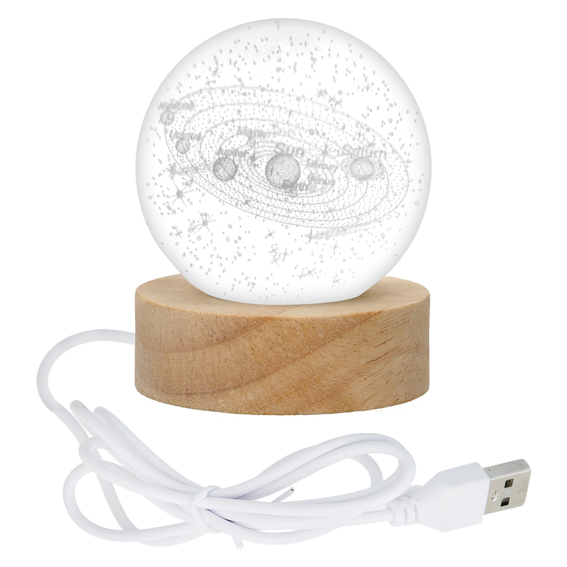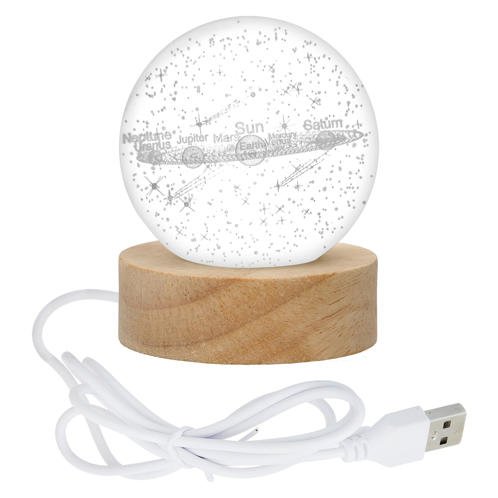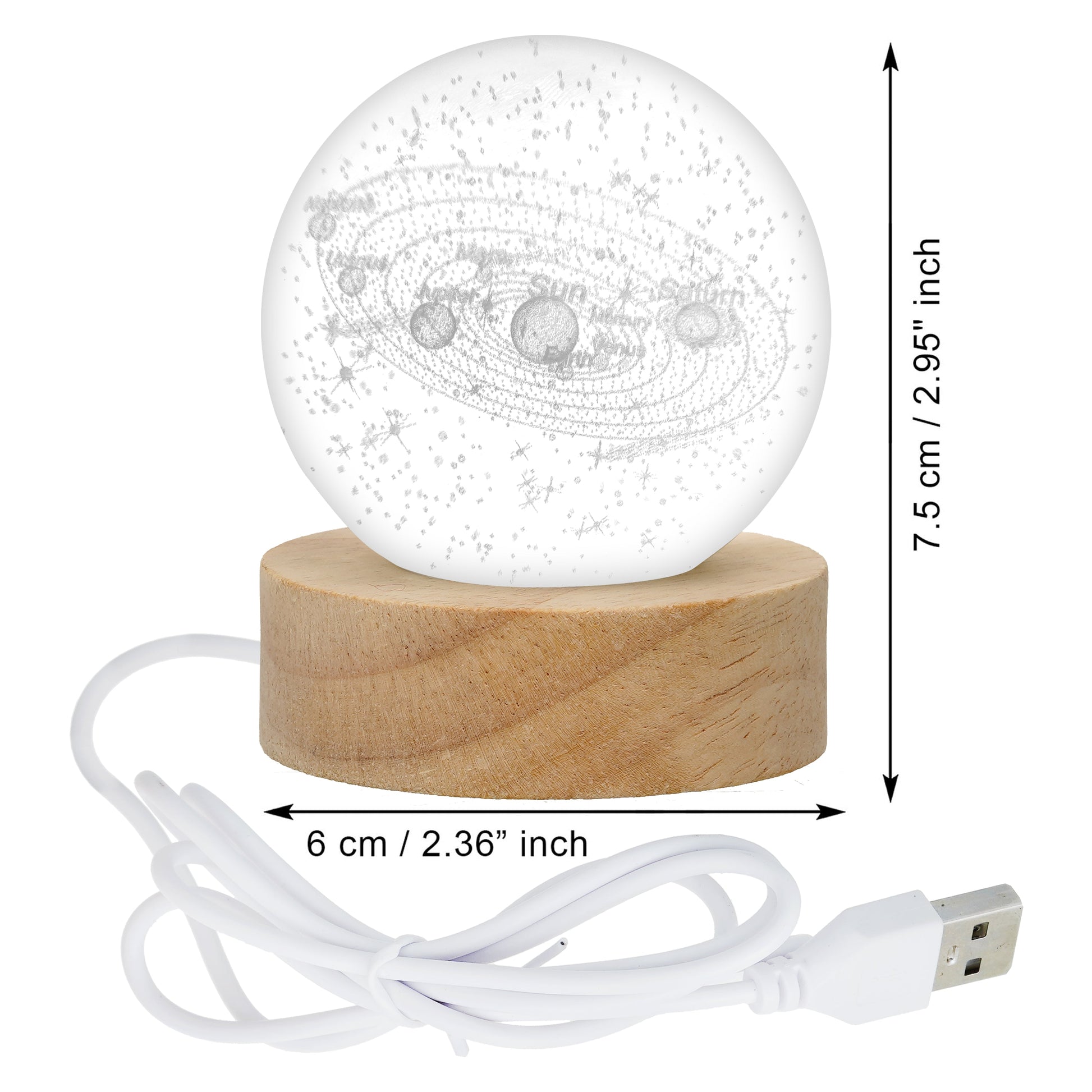 - Package Include: 1* solar system Moon Lamp , 1*USB Charging Cable , 1*Wooden Stand , 1*User instruction