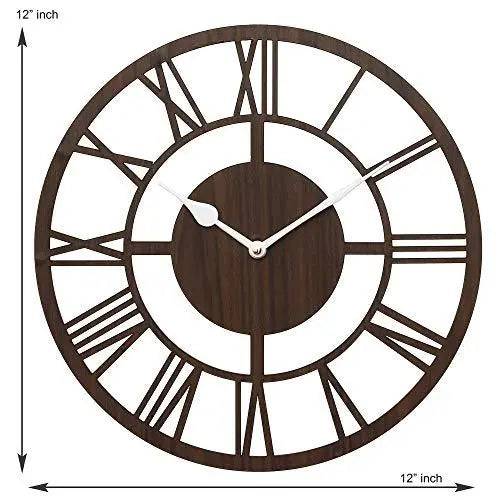 Webelkart Improved Roman Beautiful Round Wood Wall Clock (12 Inch x 12 Inch, Brown)- Without Glass