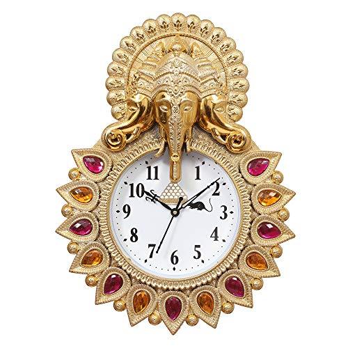 Webelkart Plastic Lord Ganesha Designer Wall Clock (Gold, 13 X 2 X 17 Inch)