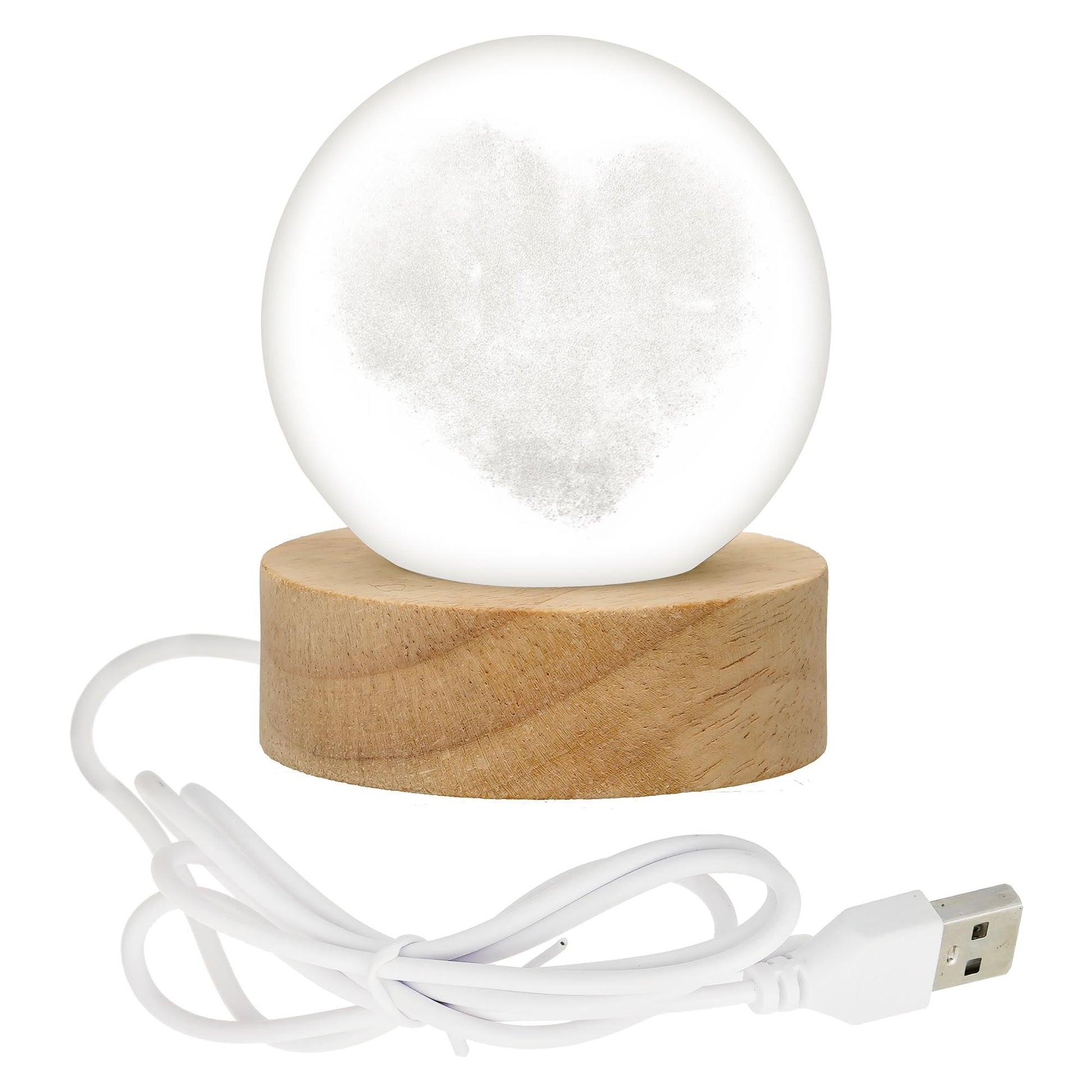 Webelkart Premium 3D Crystal Heart Moon Lamp Night Light for Home Decor/Crystal Ball Night Light with Warm White Dimmable LED with Wooden Base/USB Table LED Lamp,Gift for Valentine (Heart Shape)