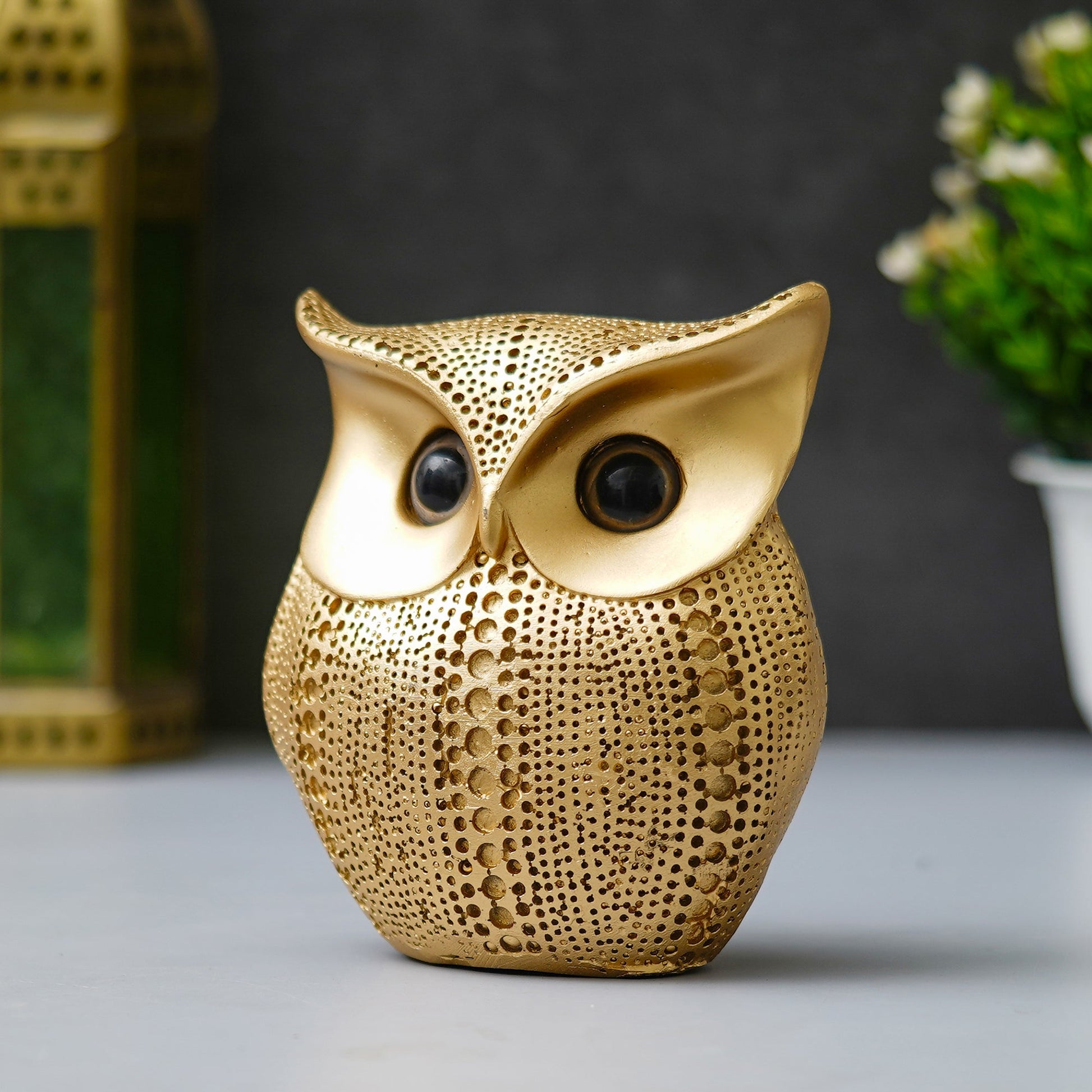 Webelkart Premium Gold Resin Classy Lucky Owl Figure Showpiece for Home/Office Decor,Decorative Items for Table Decor Owl Status (Gold-5.51" Inches)