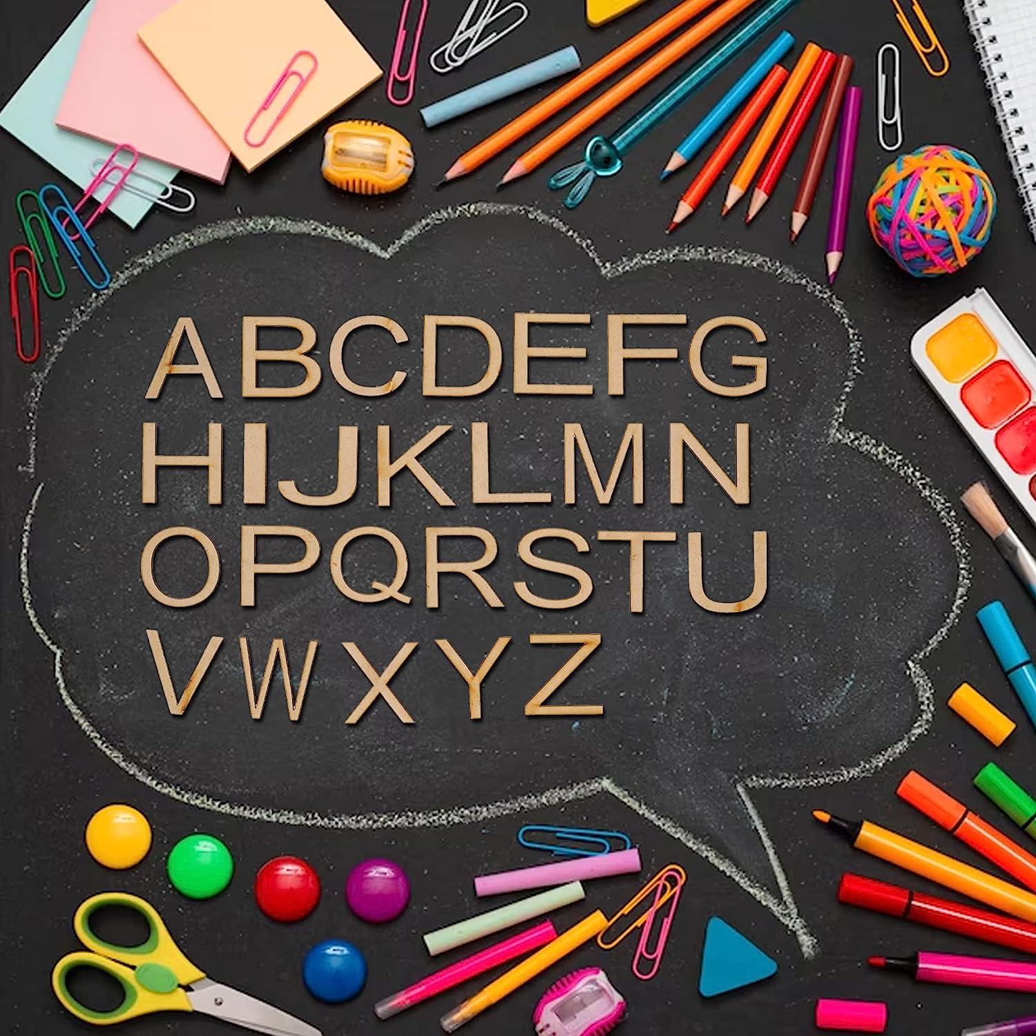 Webelkart Premium Laser Cut 26 PES Capital Alphabet Letter for Kids Learning Gift/Wall Decor/Letter Board/School Board (Wood Colour)