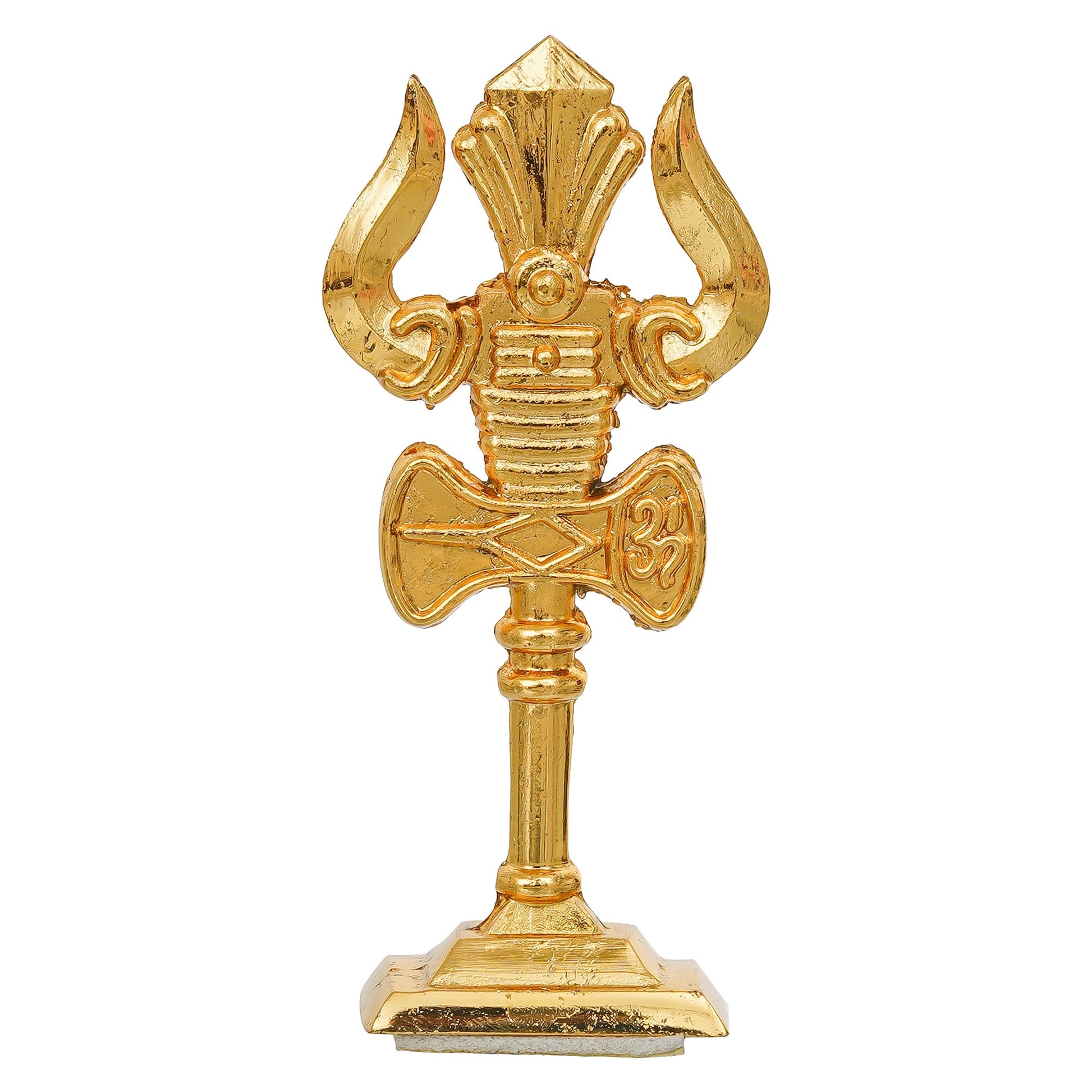 Webelkart Premium Metal Lord Shiva Trishul with Damru on Stand Statue for CarDashboard,Pooja Decor Beautiful Mahakal Trishul for Temple Decor Pooja Artical,Adiyogi Trishul (3.93" Inches Gold)