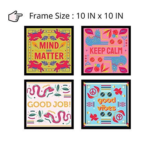 Webelkart Premium Motivational/Inspirational Quote Synthetic Photo Frame for Wall, Office, Study Room Decoration Poster Framed with Plexi Glass, Size - 10 x 10 Inch, Multicolour | Set of 4