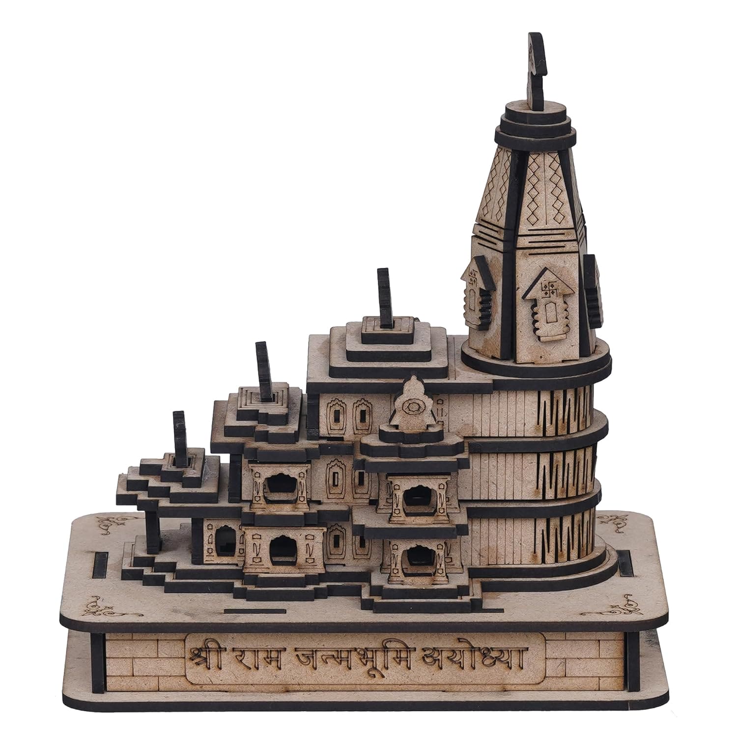 Webelkart Premium Ram Mandir Ayodhya Temple Plywood Mandir Pooja Room Home Decor Office/Home Temple Wooden Ram Mandir (7" Inches) Brown Color