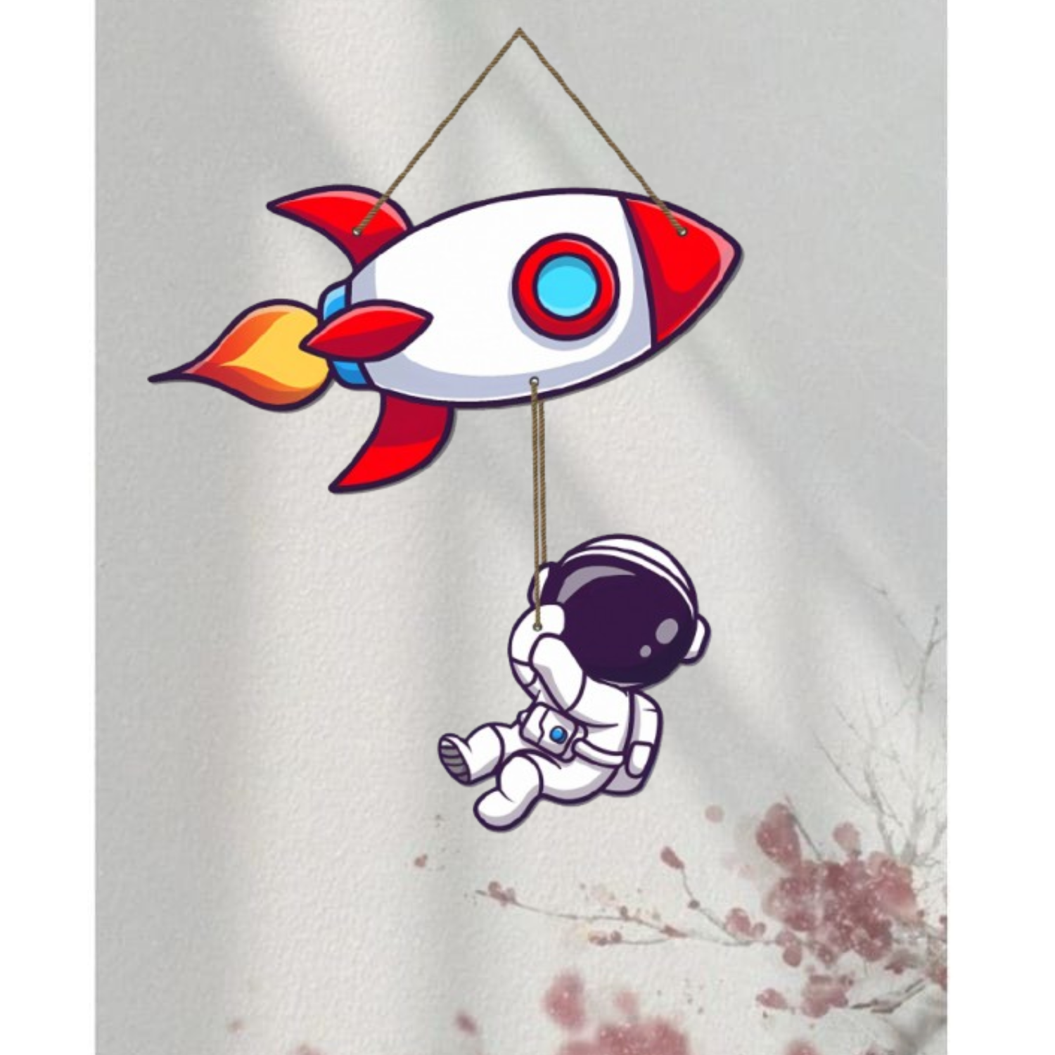 - Color: Multi, Size: 18 x 10 Inches, Wooden Astronaut Print Wall Hanging