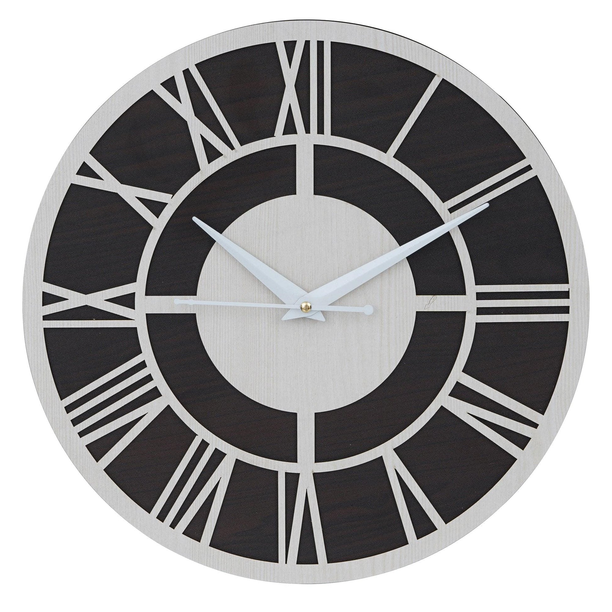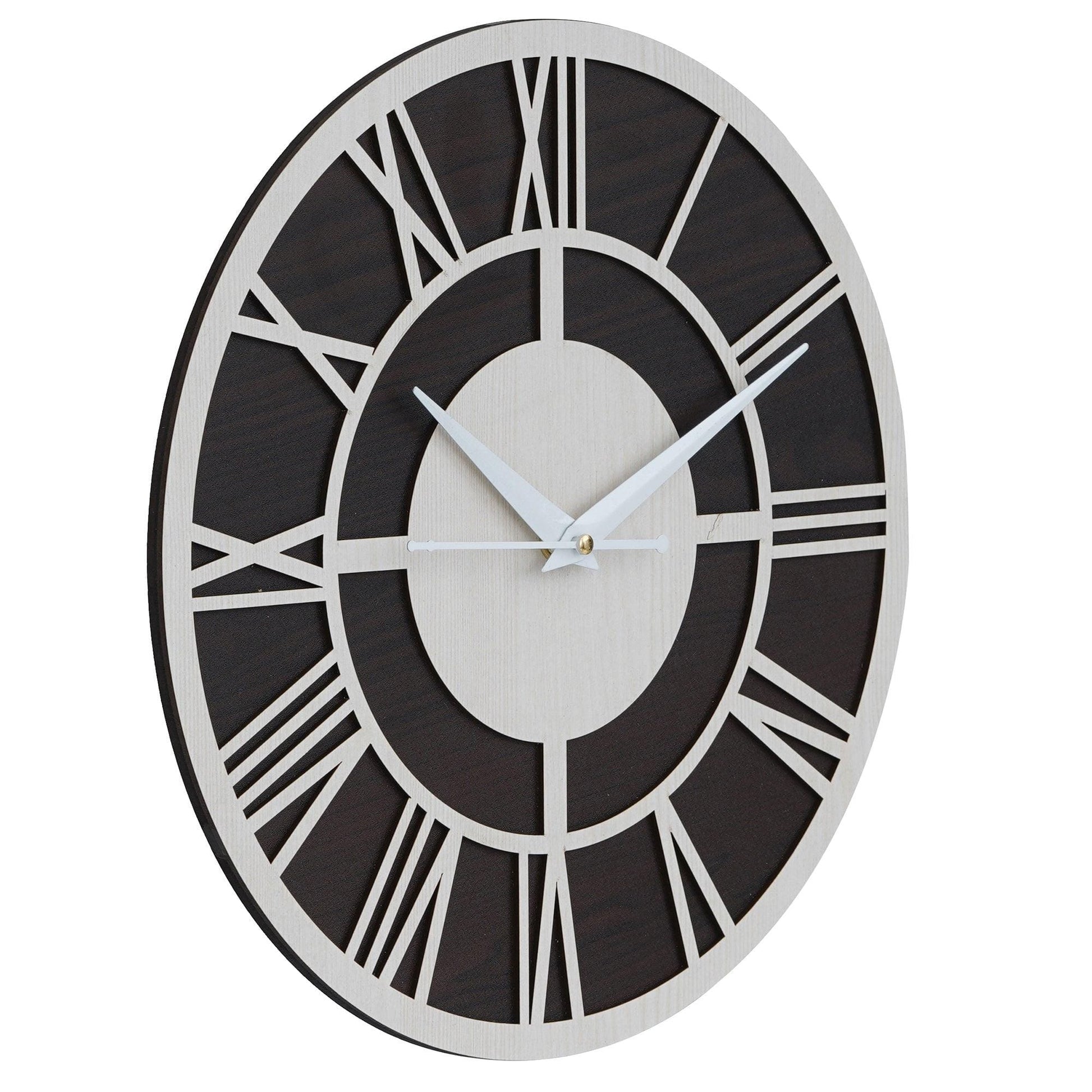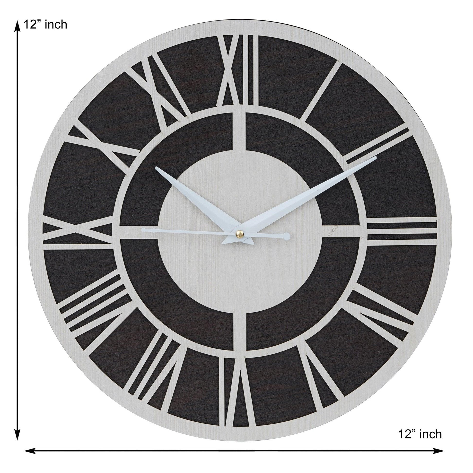 Webelkart Roman Beautiful Round Wood Wall Clock Without Glass (12 Inch x 12 Inch, Ivory,Black)