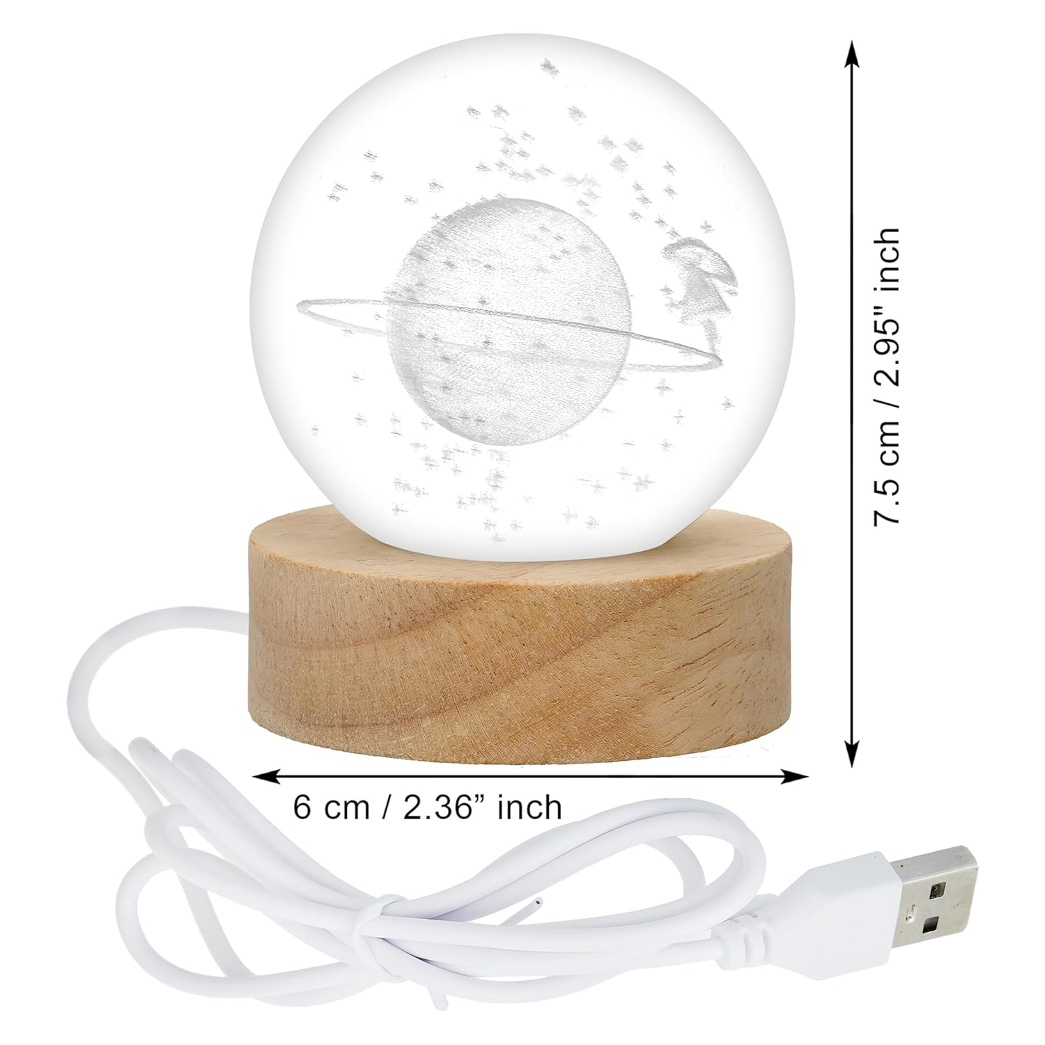 Webelkart Antique Big Moon Fairy 3D Crystal Ball Night Light with Wooden Base,Night Light with USB,LED Lamp 3D Crystal Moon Lamp with Warm White Dimmable LED Diwali Decor Item(3" Inches)