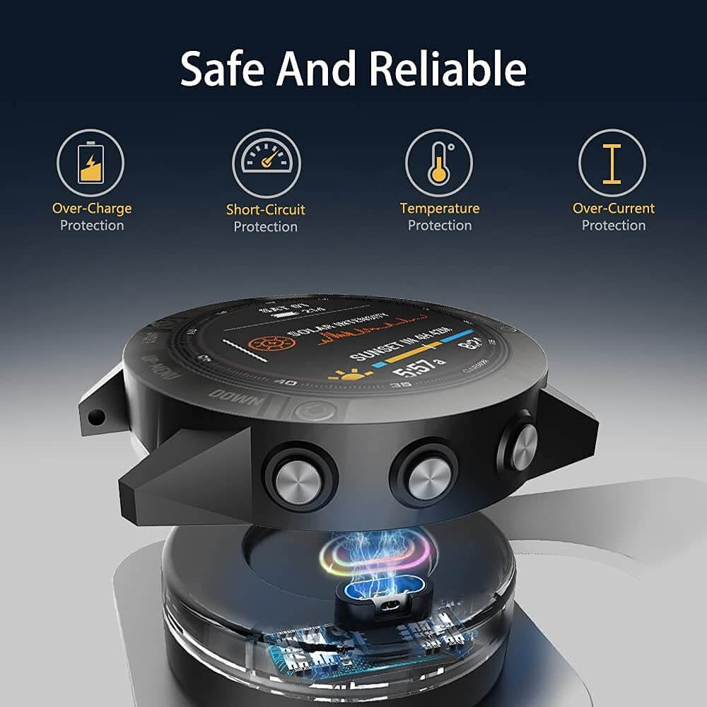 - Safe charging : Built-in Smart IC for Safe Charging, voltage regulator and a PTC inside to protect your device from overcurrent, they consist of surge and over-current protection and protect your watch from damage when charging
