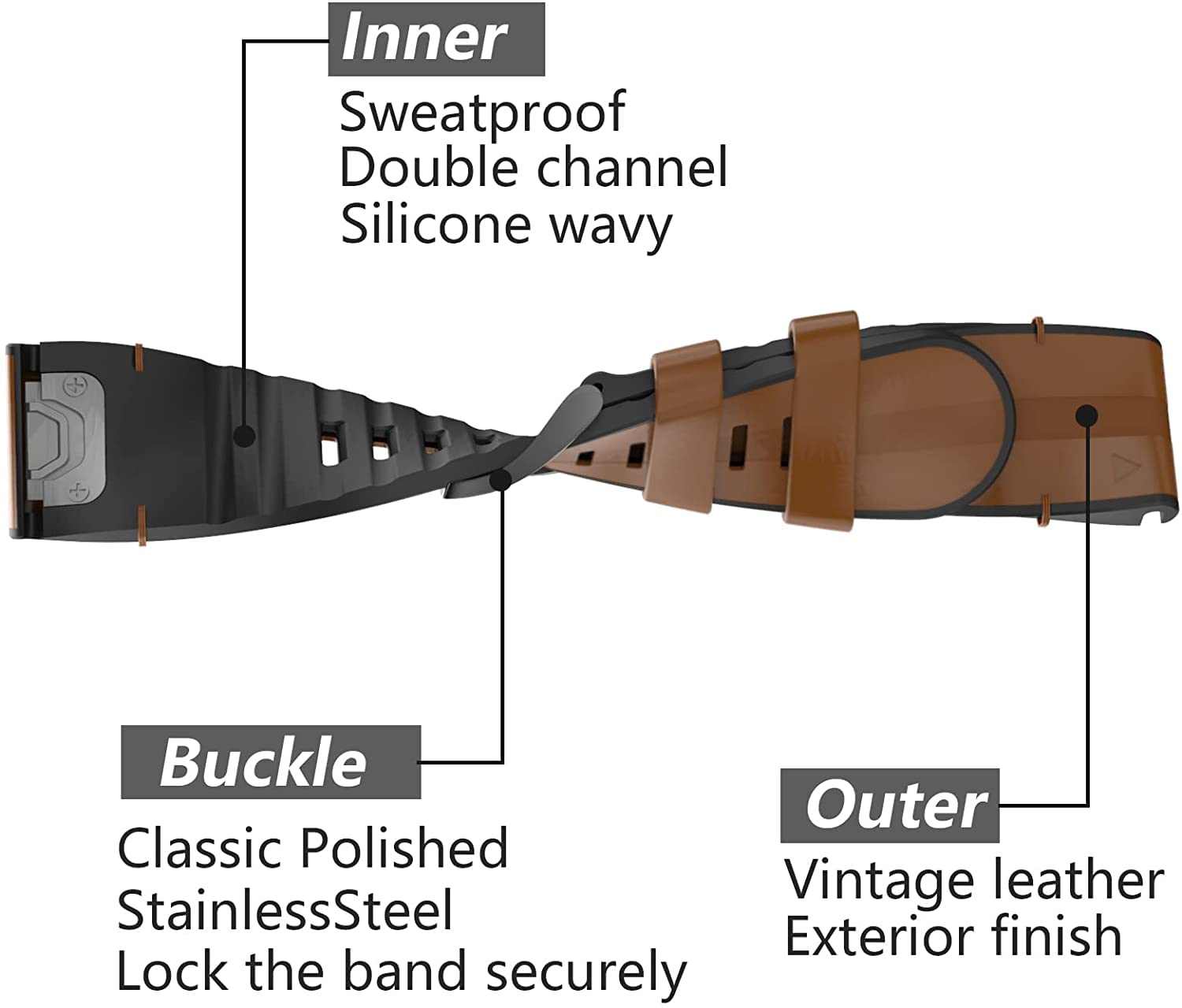 - Unique Double Material Design : The exterior is made of leather which is fashionable and craftsmanship & the inside is made of Non-allergenic silicone, which is sweatproof, double channel wavy design, giving your skin room to breathe