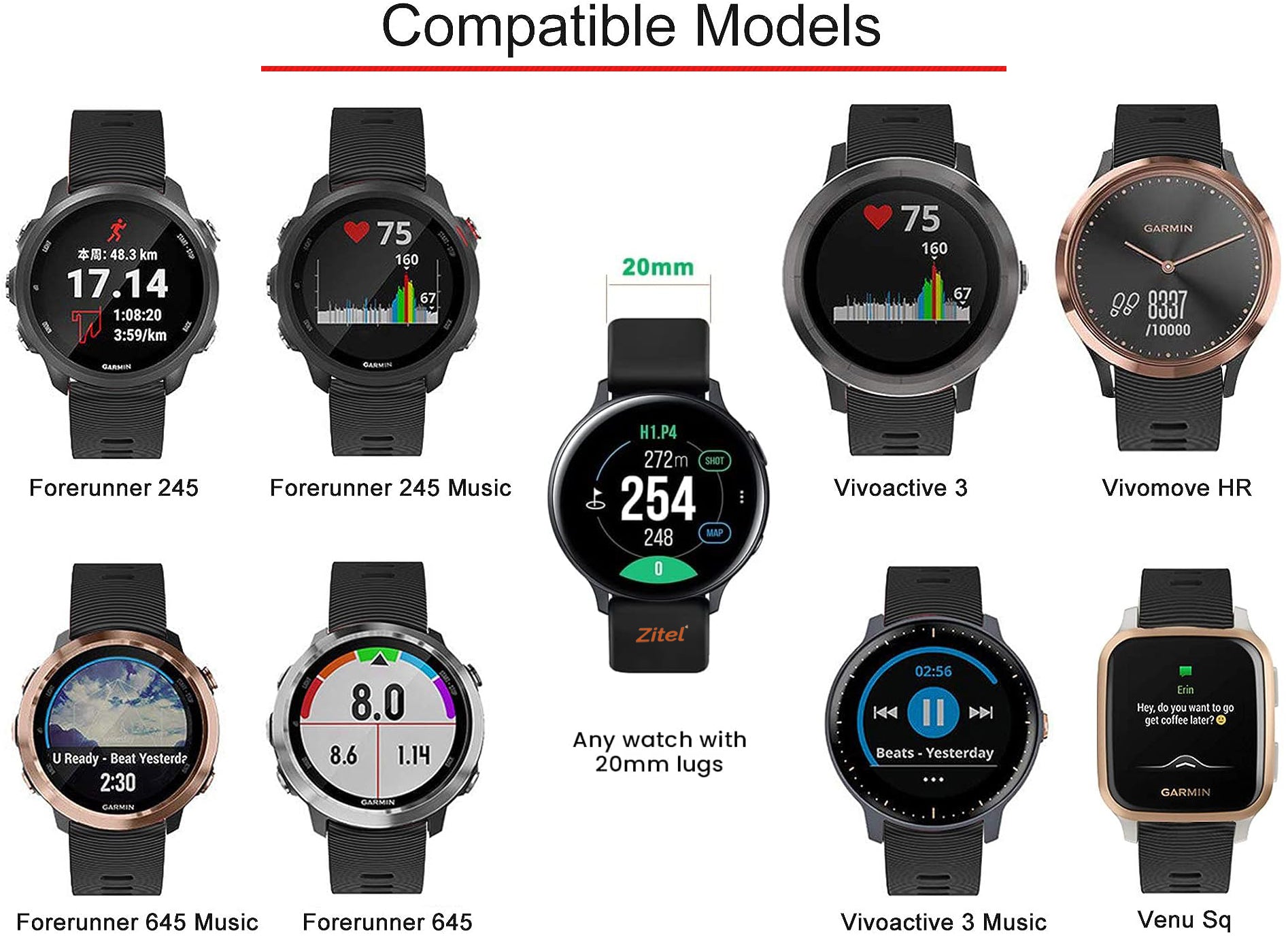Zitel Bands for Garmin Forerunner 165/245/645, 55/158, Vivoactive 6/5/3/3S, Venu Sq/Sq 2, Venu 2 Plus, 20mm - Spanish Red