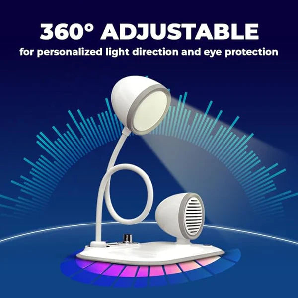- 3-in-1 Functionality – Desk lamp, wireless charger & Bluetooth speaker.